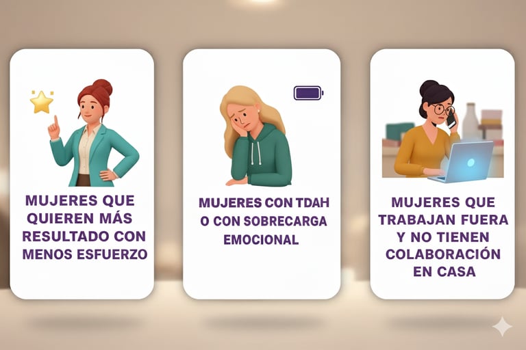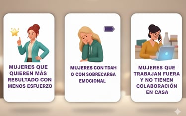 Incluso con TDAH o trabajando fuera de casa, con un niño y sobrecarga emocional, esta planificación visual reduce tus horas de limpieza y aporta verdadera ligereza a tu rutina